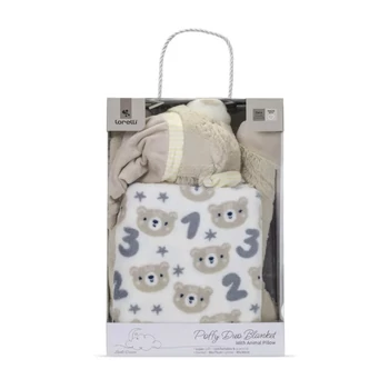 Lorelli Takaró Szett plüssállat párnával, Bézs maci 75 * 90 cm (2 db/sz)